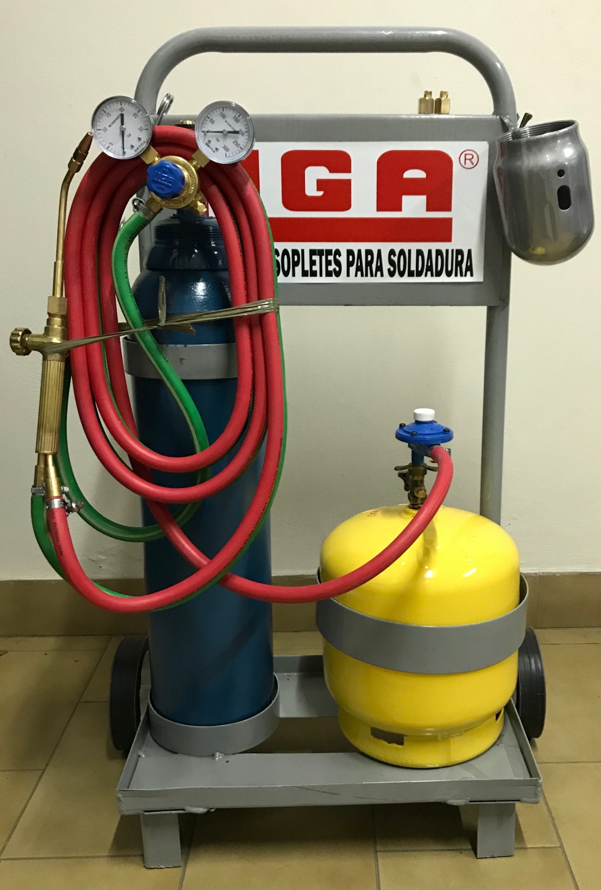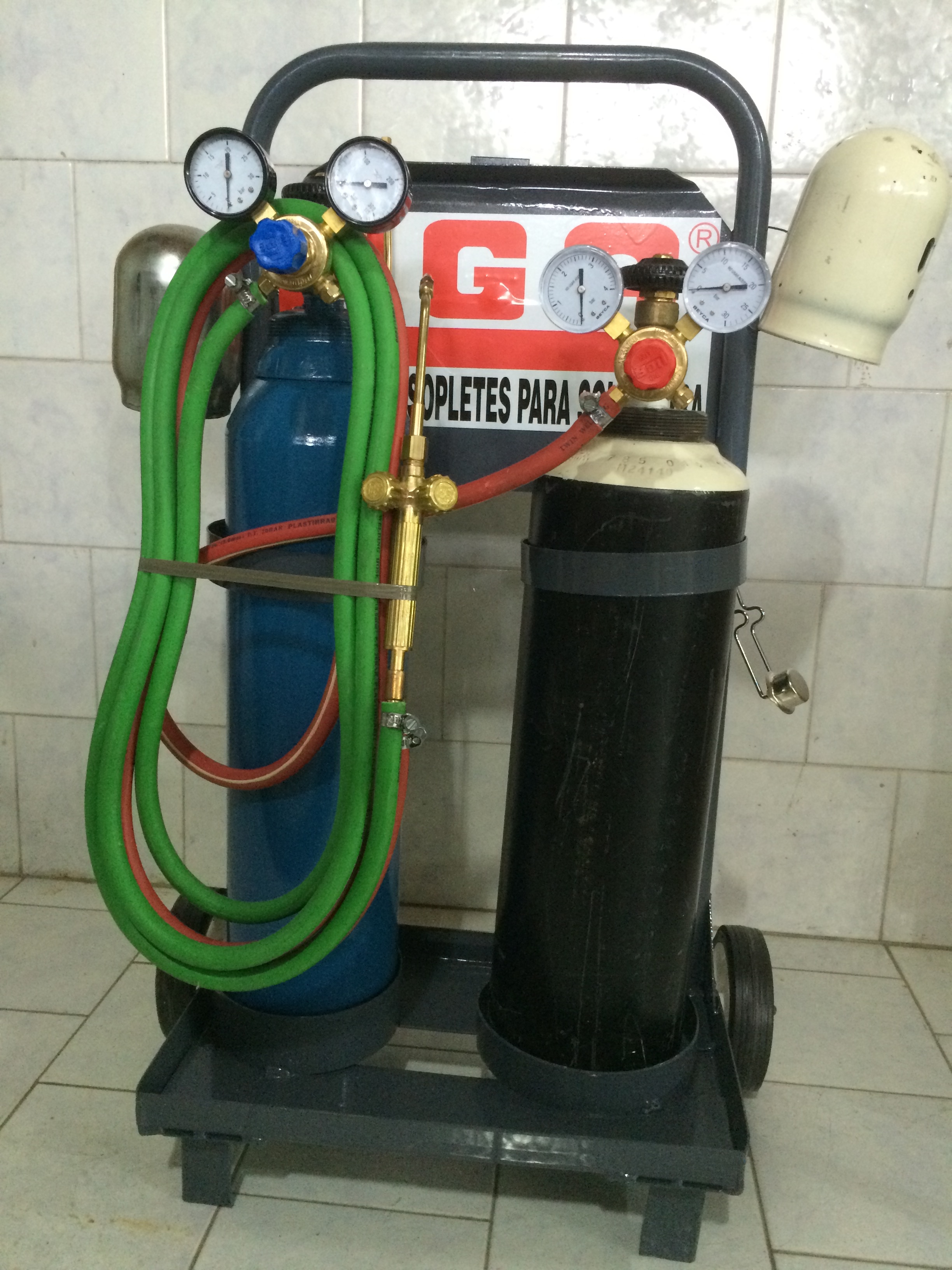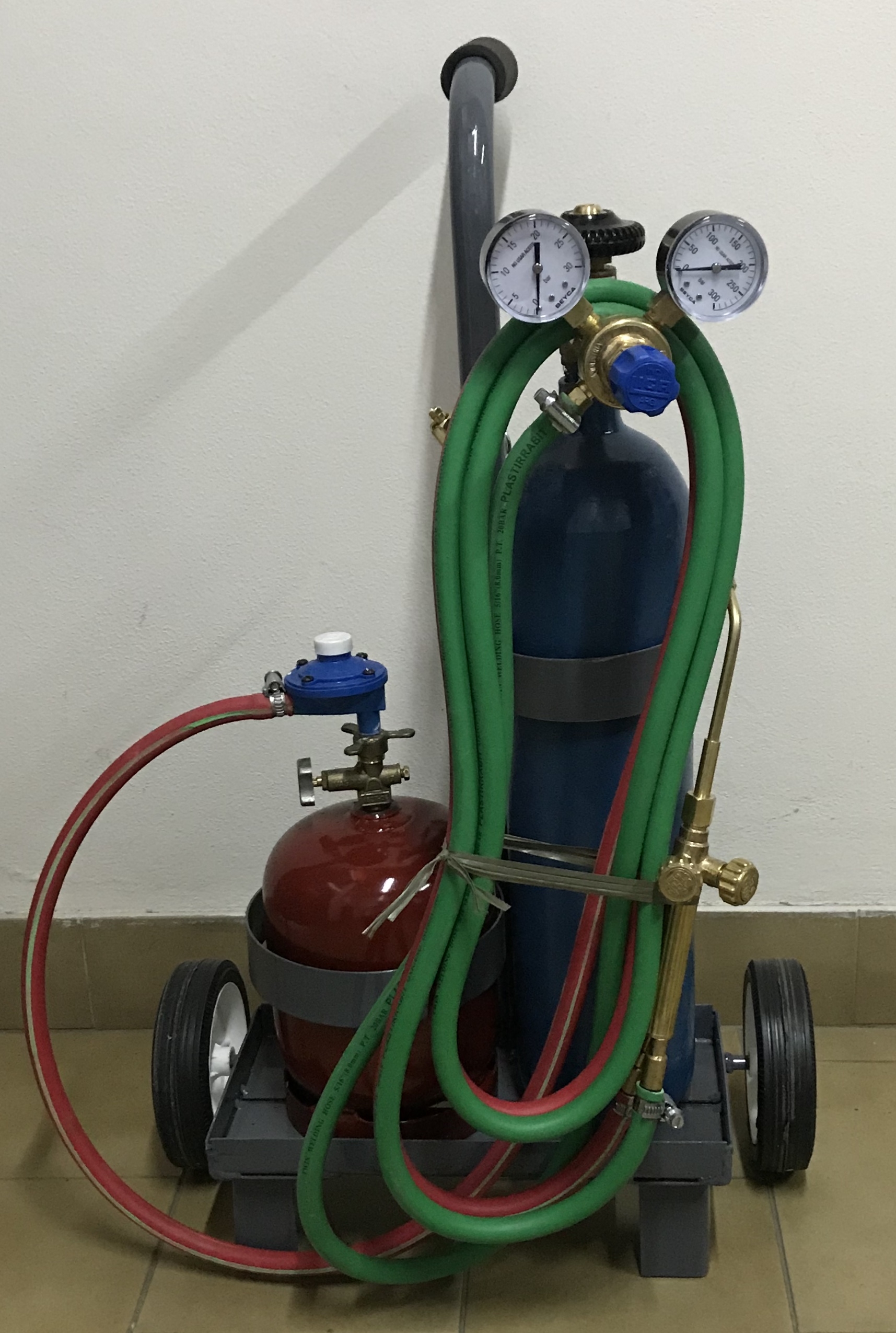 Carro porta gasógeno de 2 Kg. y tubo de oxígeno de 2 mts. c/válvula y soplete M3 completo